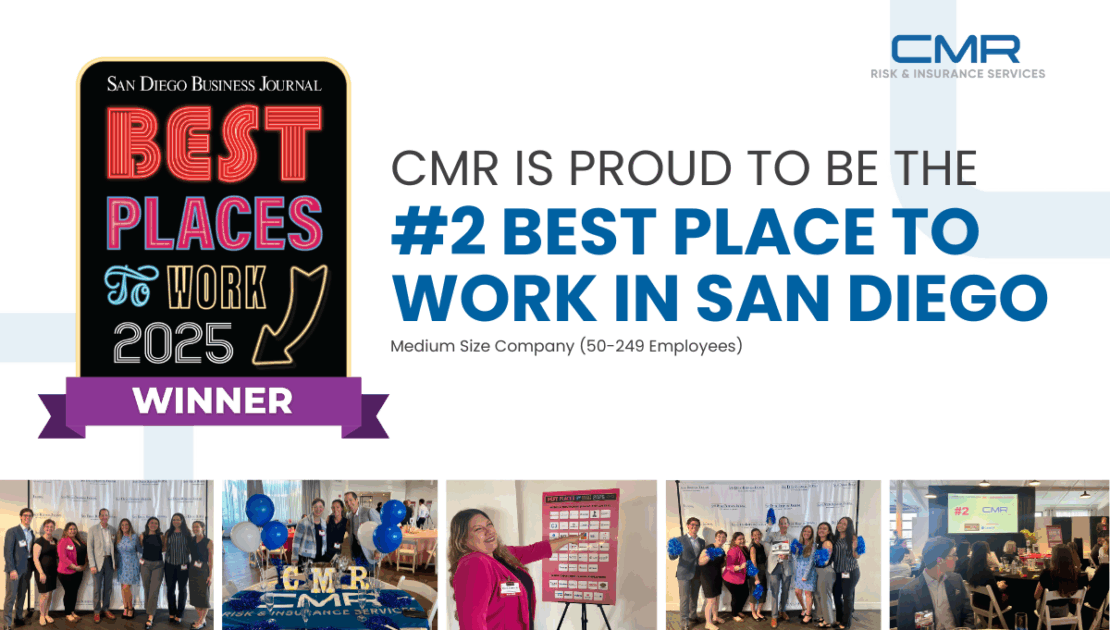 We are thrilled to announce that CMR Risk & Insurance Services has been ranked #2 in the San Diego Business Journal’s 2025 Best Places to Work list for medium-sized companies (50–249 employees).